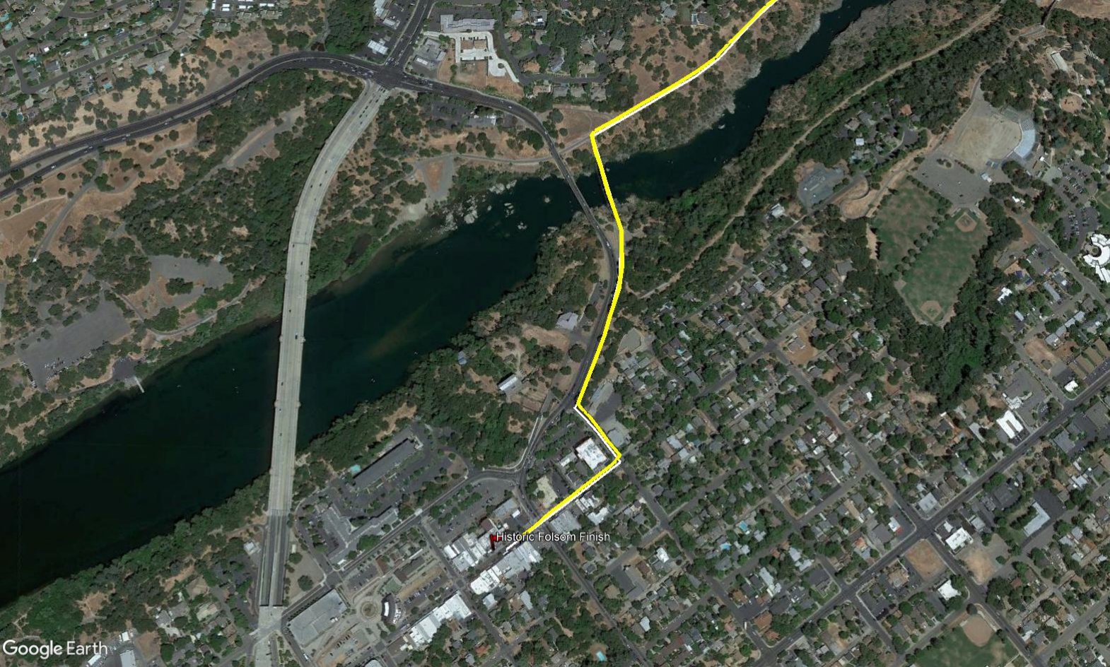 Notes: All racers must ride this final portion of the course into Folsom for results to be valid. Mother Lode Epic finishes with a neutral roll into Historic Folsom. Check out views of Folsom Prison and Lake Natoma from the trail before crossing under the finish arch on Sutter Street. Click here for a zoomed in map of the finish. |