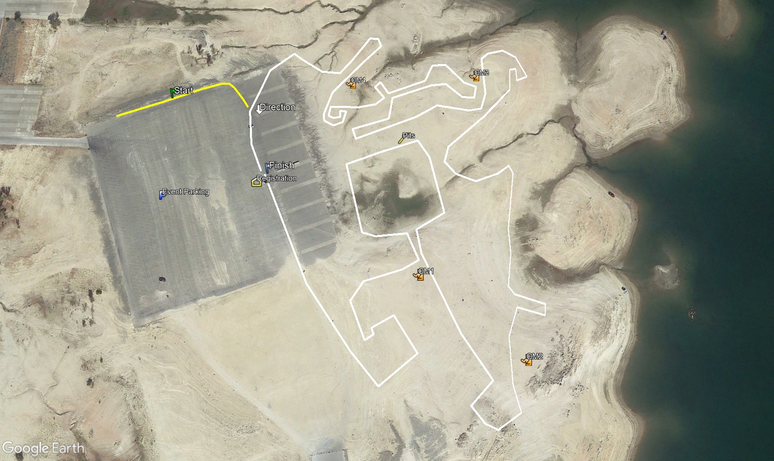 Our Folsom Lake CX course is based from the “Stage 2” parking lot and boat launch area within the Granite Bay access on the west side of the lake. Much of this course will be on hardpack ground, with fun sandy descents and natural hardened sand “rock” features to navigate and some fun by the water’s edge. Our start/finish area is the highest point on the course and has a clear view of nearly the entire track on the lake bottom below.